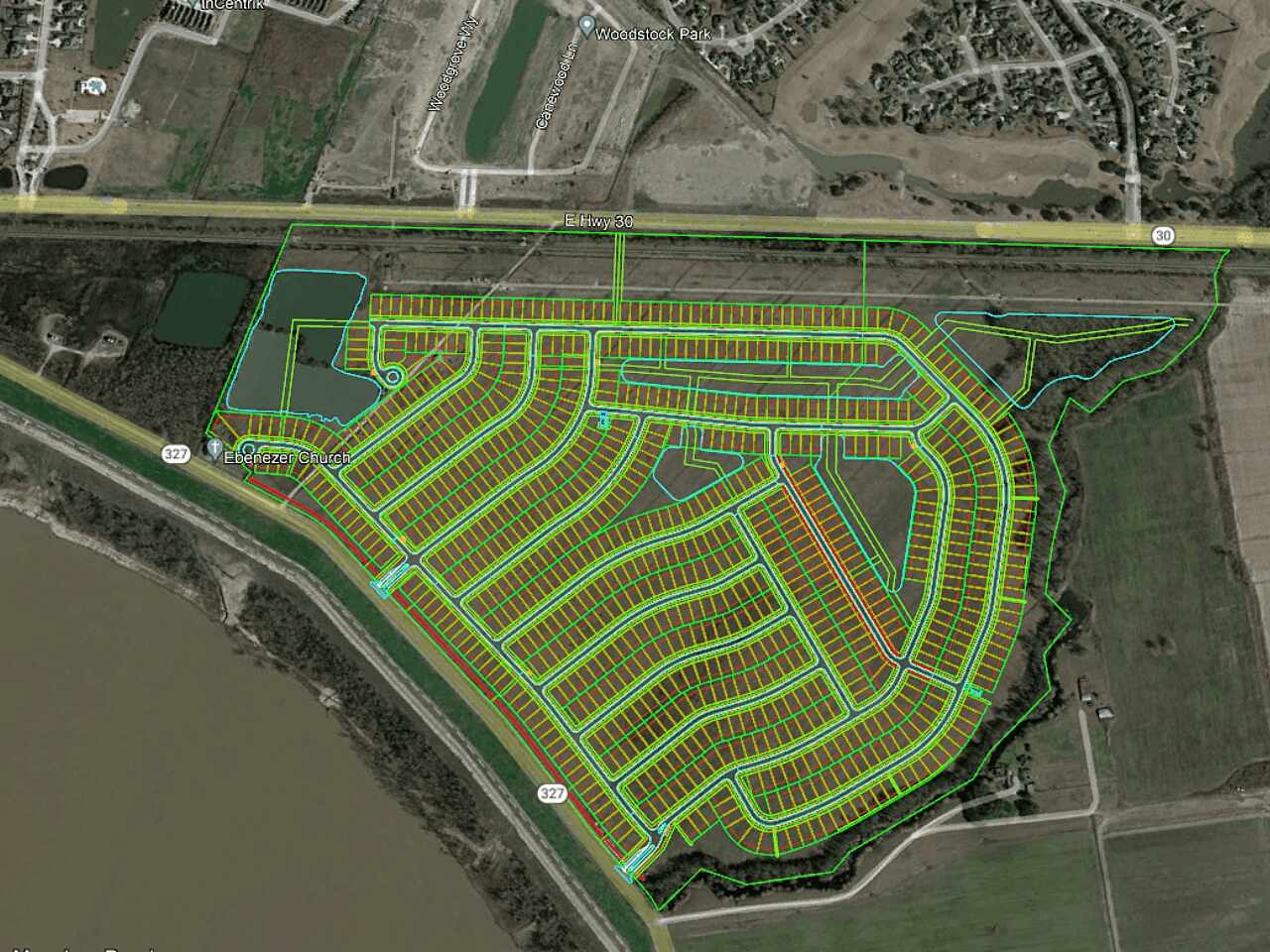 This project started with an extensive site investigation and complete reevaluation of the design and game plan prepared by previous consultants. This site has many challenges and opportunities because of the proximity to the Mississippi River, relatively flat topography and adjacent railroad. The first two filings of Atwater Subdivision have been completed. This site consists of +/- 776 single-family lots. Our civil engineering team provided the client with a mass grading scope, preliminary plat revisions, construction documents, design data, permitting, and construction support. Our survey team provided final plants, lot stakeouts, and topographic survey. There is a total of 6 filings that DDG will design and manage before the full build-out is complete.