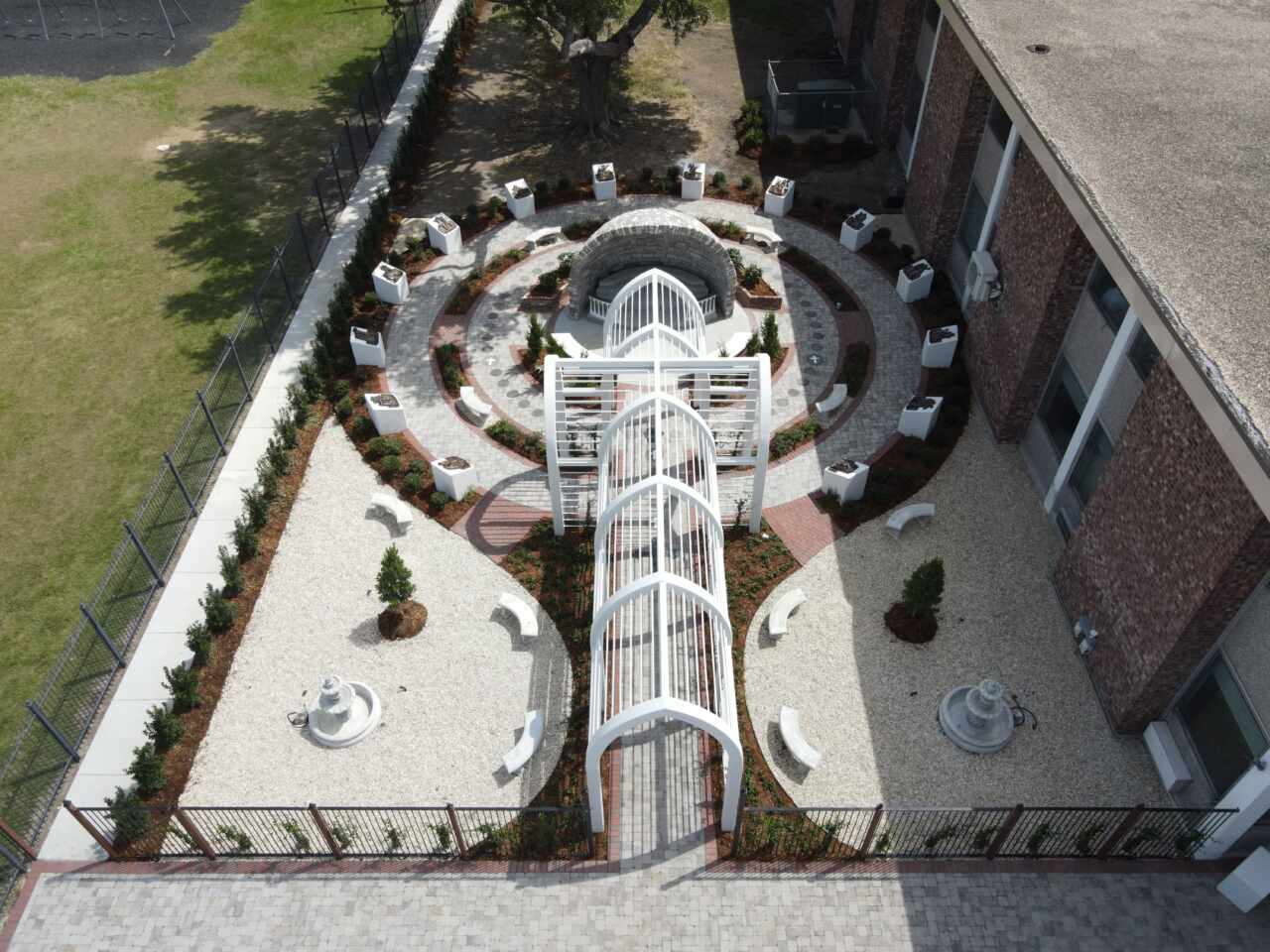 DDG provided Civil Engineering, Landscape Architecture, and Architecture services for E.D. White Catholic High School’s Our Lady of Mt. Carmel Grotto and Devotional Garden. The project site is located under two large oak trees that have been planted for years. The garden includes a grotto in the center with two walking rings surrounding the grotto. One of the walking paths incorporated the rosary, and the outside ring includes the stations of the cross.