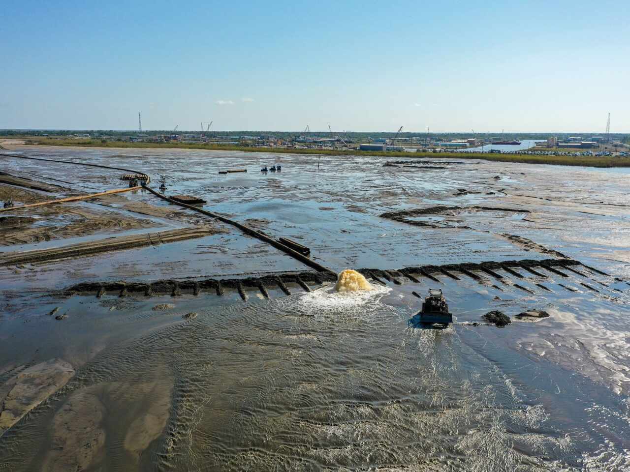 For this project, DDG outfitted multiple boats with different equipment. For the borrow area and dredge pipeline, DDG utilized a 24’ Scully equipped with an Odom Echotrac, Geometrics GA-882 Cesium Magnetometer, PosMv with an Applanix IMU, and Hypack2020. In the fill area a different approach was required due to shallow water and broken marsh. In the shallow water, DDG outfitted a 20’ shallow draft boat with an R12i and Geometrics GA-882 Mag to perform topographic and magnetometer surveys, in the broken marsh the field crews used a similar setup outfitted in a 16’ Robichaux Air boat. Once data was collected, technicians utilized Trimble Business Center, Civil 3D, Hypack2020, Excel, and ArcGis to process and produce deliverable to the LASARD standard.